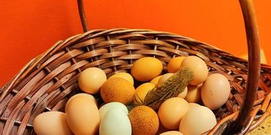 Chicken eggs & Pastured duck eggs living happy lives as part of our permaculture system.