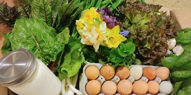Get an amazing assortment of delicious raw goat milk, eggs and produce for 7 months out of the year. 2 boxes per month at only $55 each!